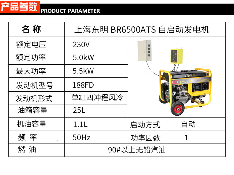 * 表示必填采購:單相5kW無人值守ATS小型汽油發(fā)電機(jī)組BR6500ATS