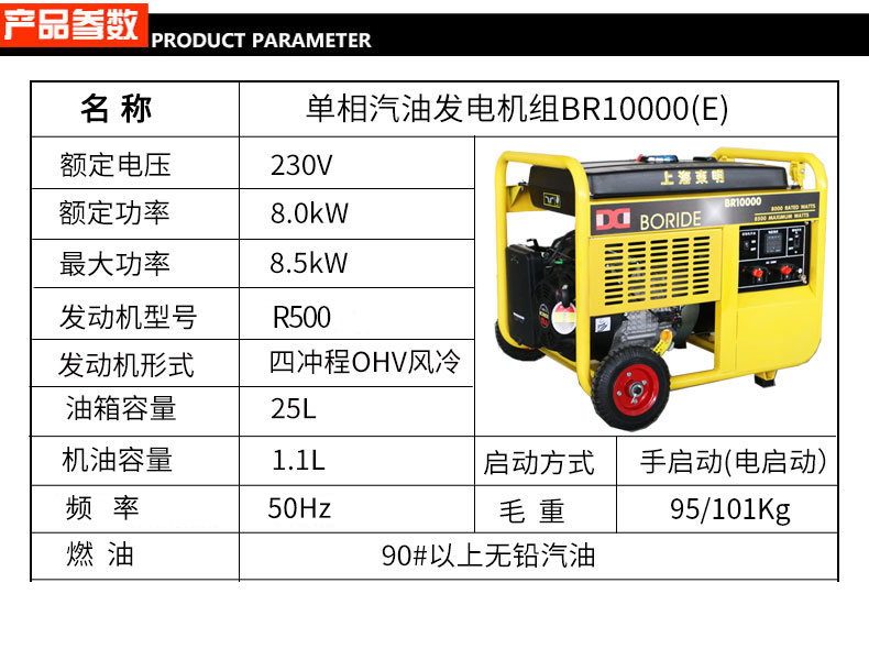 單缸汽油發(fā)電機組BR10000(E)