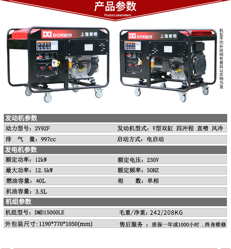 上海東明單相12KW 12000W柴油發電機組DMD15000LE